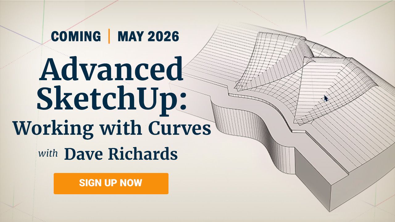 Dave Richards has been a SketchUp user and teacher for more than 15 years. He is an authorized SketchUp trainer and uses the drawing program for a wide variety of projects, from tiny medical devices to architectural projects. He also draws project plans for Fine Woodworking and is a contributor to the blog "Design. Click. Build". He is the author of the SketchUp Guide for Woodworkers (The Taunton Press).